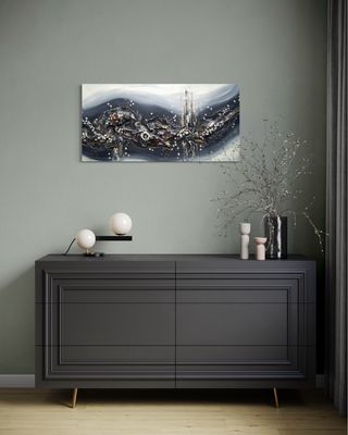 Große abstrakte Acrylbilder wirken besonders stark in modernen Wohnräumen.
